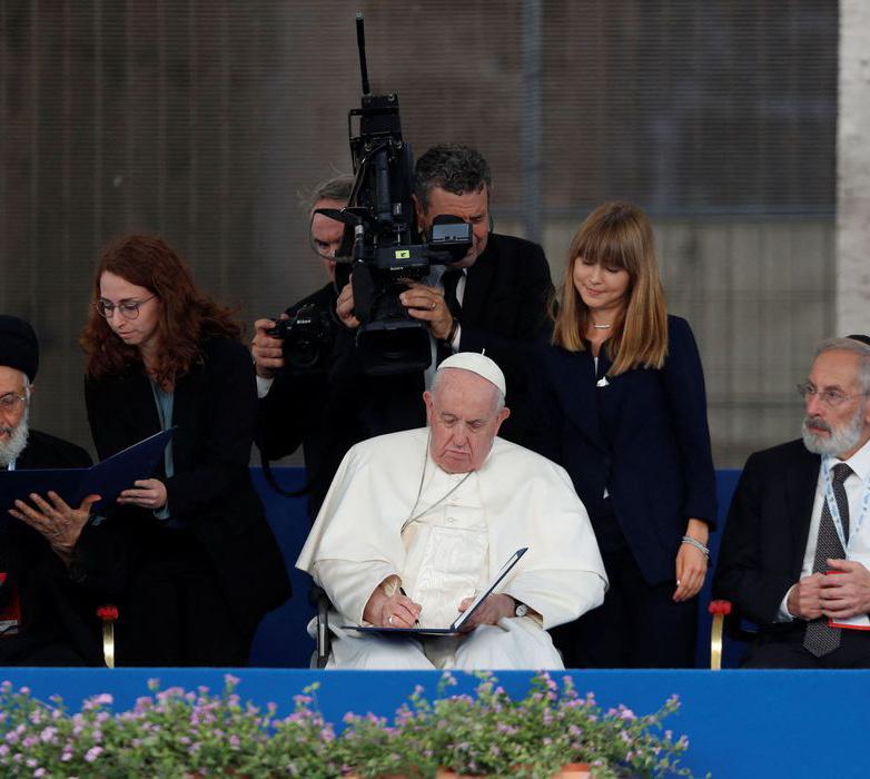 Em seu discurso para mil hares de pessoas, feito após vários grupos religio sos orarem separadamente, Francisco criticou o “cenário sombrio de hoje, onde, triste dizer, os planos de poderosos líderes mundiais não levam em consideração as justas aspirações dos povos”.