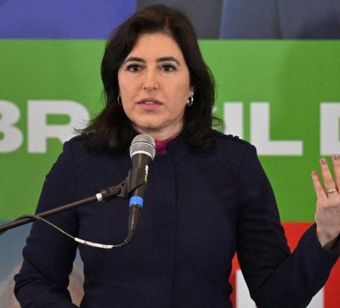 Asenadora Simone Tebet (MDB) repu diou uma fala do presidente Jair Bolsona ro (PL), candidato à ree leição, diante das denún cias de assédio sexual contra o ex-presidente da Caixa, Pedro Guimarães. Tebet acusou Bolsonaro de “dar voz ao agressor” e “relativizar” as acusações.
