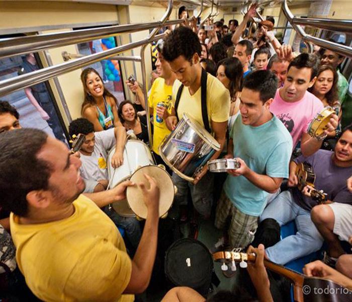 Mas é bom se preparar. É uma verdadeira maratona. Começa às 18h e vai até o último sobrevivente. No trem, vai todo mundo em pé no vagão lotado. Se não ficar perto dos músicos é até difícil escutar algo. A festa é