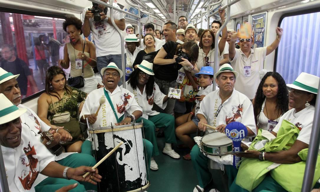 Este ano o samba cairá num sábado. O esquema é o se guinte, a partir das 18h co meça a concentração -- com muita cerveja, claro - na Central do Brasil. Já há um trem inteiro reservado para o samba. Ano passado fo ram oito vagões ultra lota dos, este ano já reservaram 12. Cada vagão vai com um grupo que agita uma das ro das de samba do Rio, tem o vagão da Velha Guarda da Portela, do Bip-Bip, o da Te