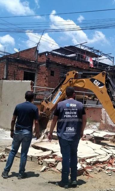 ASubprefeitura de Jacarepaguá e a Secretaria Munic ipal de Ordem Pública (Seop) demoliram nesta quinta-feira, dia 01, uma construção irregular na Estrada dos Teixeiras, em Jacarepaguá, em área sob influência do crime organizado. O imóvel, de 45m2, possuía carac terísticas de utilização comercial e foi erguido so bre a calçada, impedindo o trânsito de pedestres.