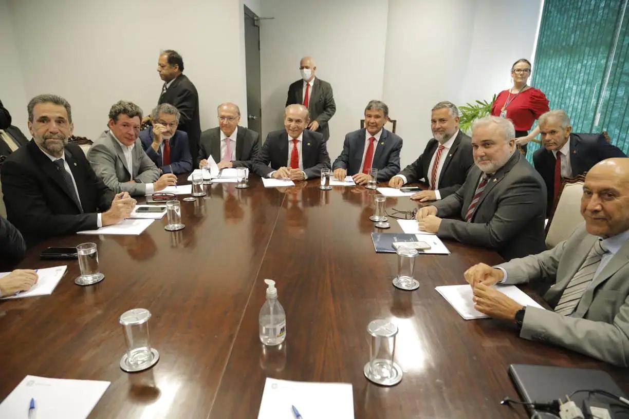 Na manhã desta quinta-feira, o vice-presidente eleito, Ger aldo Alckmin, integrantes da equipe de transição e parla mentares petistas estiveram reunidos com o relator geral