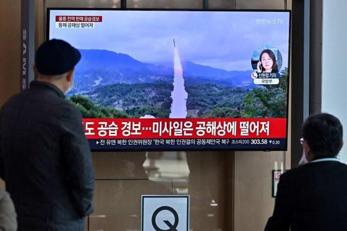 ra vez desde a divisão da Península Coreana”, afirmou nota do gabinete do presi dente da Coreia do Sul, Yoon Suk-yeol. Na noite de ontem, outro míssil norte-coreano foi disparado em direção ao Oceano Pacífico. Por meio de Pak Jon Chon, funcionário de alto escalão do regime de Kim Jong-un, a Coreia do Norte condenou os exercíci os militares conjuntos que envolvem forças sul-core anas e norte-americanas.
