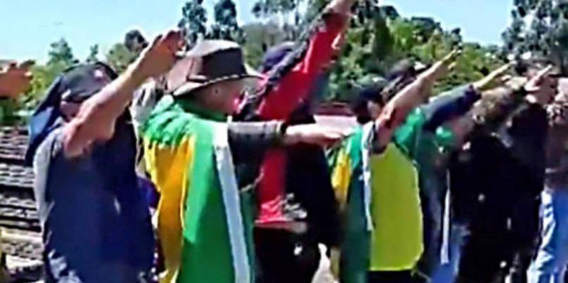 Em vídeos que circulam nas redes sociais, centenas de manifestantes re alizam o gesto semelhante ao nazista enquanto era entoado o Hino Nacion al Brasileiro em São Miguel do Oeste. O caso era apurado pelo Grupo de