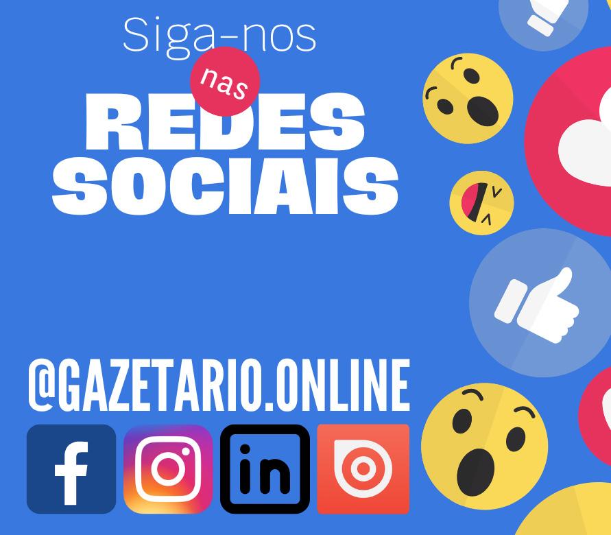 Uma publicação de Gazeta Rio Comunicações Ltda. GAZETA RIO Fundado em 1997 Diretor Presidente Jorge Bernardes Redação e Administração: Rua Pedro Guedes, 74 São Cristóvão - Rio de Janeiro Tel. (21) 995030765 gazetario@gazetario.com administracao@gazetario.com comercial@gazetario.com Editor: Horácio Avelar Conselho editorial: Carlos Alberto Antônio e Tainá Bernardes Editor de Cultura - Caderno G: Amaury Oliveira Diretor Administrativo: Tainá Bernardes Circulação: Região Metropolitana, Baixada Fluminense, Sul Fluminense, Costa Verde e governos. Sucurssais: Baixada: Vanderson Claudino Região dos Lagos: Henrique Sepúlvida Obs. As matérias assinadas não refletem necessariamente a opinião do Jornal GAZETA RIO, e seus conceitos, interpretações, afirmações e pontos de vista são de inteira responsabilidade dos respectivos autores.