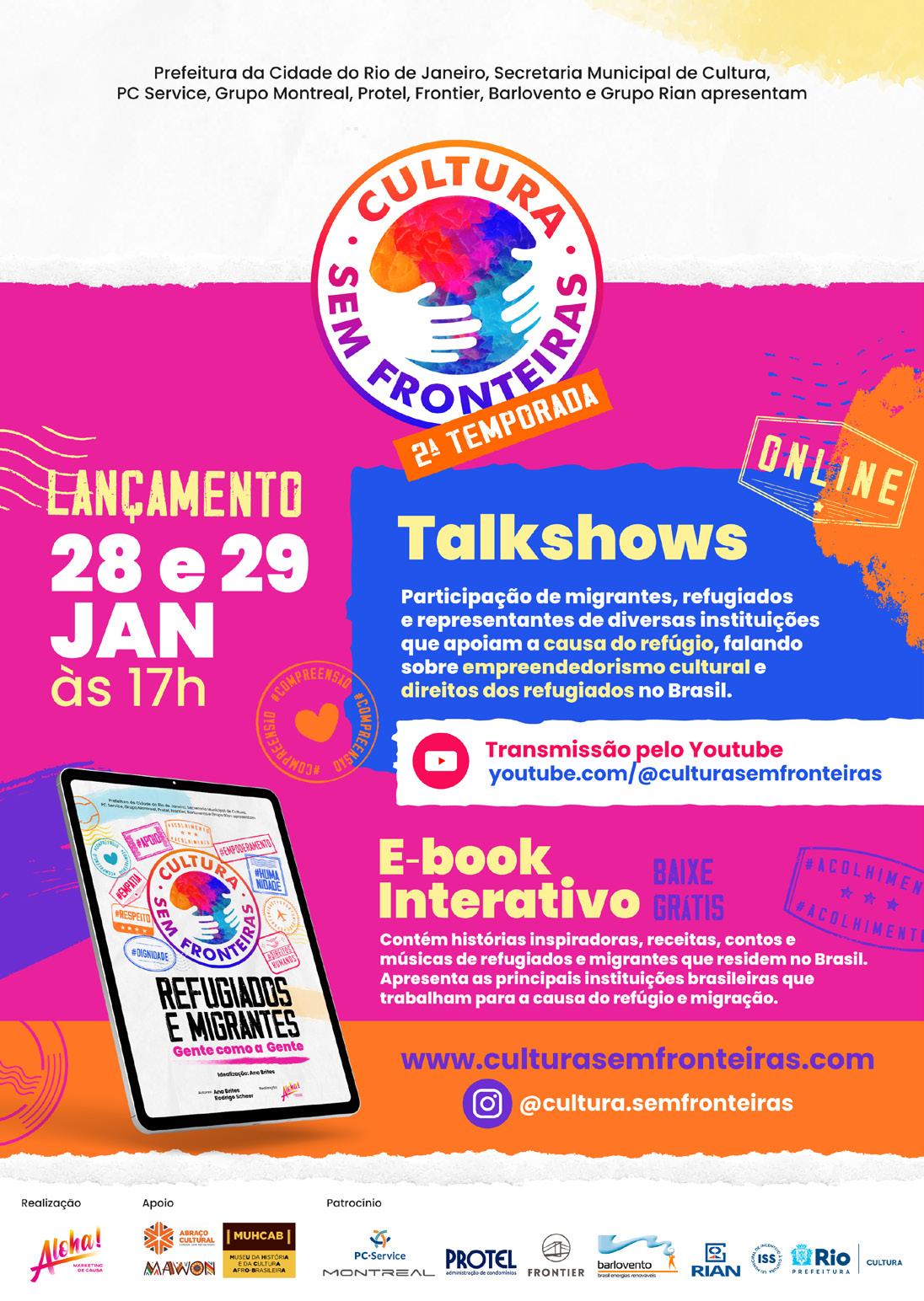 O lançamento nos dias 28 e 29 de janeiro, a partir das 17h pelo YouTube, inclui, entre outras novidades, apresentação do “E-book” e “Rodas de Conversa”, gravadas no Muhcab - Museu da História e da Cultura Afro-brasileira. A realização é da Aloha Consultoria & Eventos e a idealização e curadoria de Ana Brites. Para ela, o projeto “valoriza a bagagem cultural trazida pelos refugiados e migrantes que vivem no Brasil” e acrescenta: “É uma oportunidade