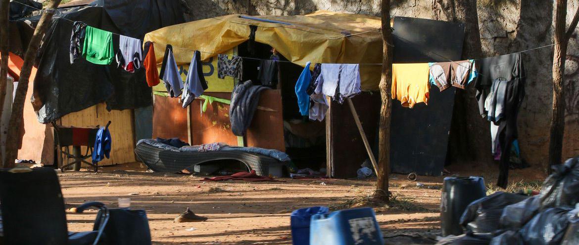 Pessoas em situação de rua acampadas no Plano Piloto, em Brasília