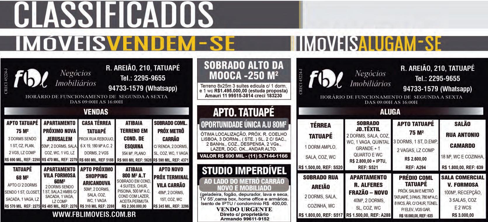 Rua Antônio de Barros, 2.687, no Tatuapé. Telefone / WhatsApp: 11 – 99430-7389.