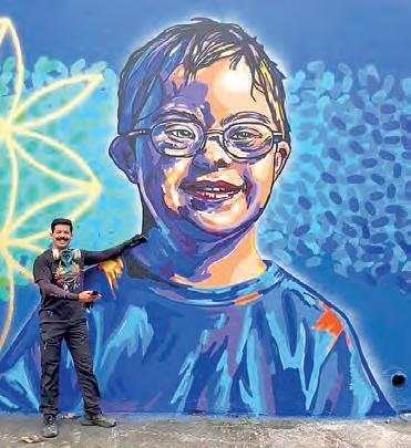 O artista plástico Mena (Gabriel Menezes) fez intervenção na fachada do Cenha