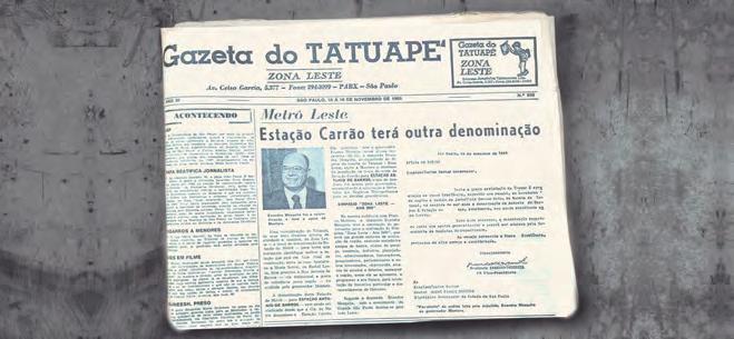Uma reivindicação do Tatuapé, de seus mais diversos setores de atividade e, também, da Zona Leste a troca de denominação da Estação do Metrô para nome que realmente identifique melhor a estação que está em fase final de construção, entre as ruas Apucarana e Monte Serrat, na Radial Leste, bem próximo à Rua Antonio de Barros, via tradicional e ponto de referência nesta região foi acolhida pelo governador Montoro. A denominação desta Estação do Metrô para ESTAÇÃO ANTONIO DE BARROS - vem sendo reivindicada desde que a Cia. do Metrô denominou-a Estação Carrão. Em audiência com o governador Franco Montoro, nessa última terça-feira (05.11), o deputado Evandro Mesquita, acompanhado do diretor da Gazeta do Tatuapé, expôs a Montoro o interesse da população na troca do nome de Estação Carrão para ESTAÇÃO ANTONIO DE BARROS, o que de imediato foi aceito pelo governador, encaminhando a solicitação à Secretaria dos Negócios Metropolitanos para as devidas providências. SIMPÓSIO "ZONA LESTE ΑΝΟ 2000" Na mesma audiência com Franco Montoro,
