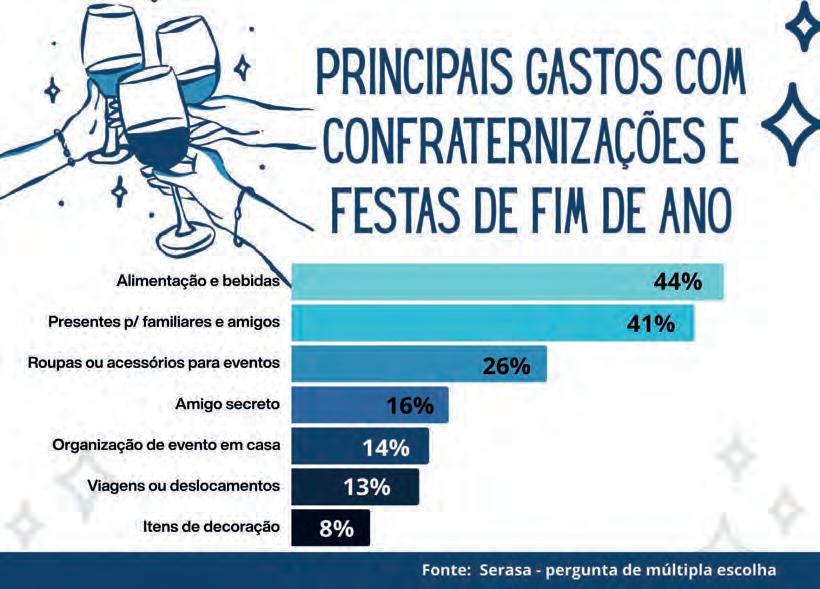 O controle de custos aparece com mais força neste fim de ano, já que 54% pretendem gastar menos do que em 2024 com confraternizações. Entre os motivos mais citados estão o desejo de destinar mais recursos para o pagamento de dívidas (39%) e o fato de já estarem com débitos acumulados (22%).