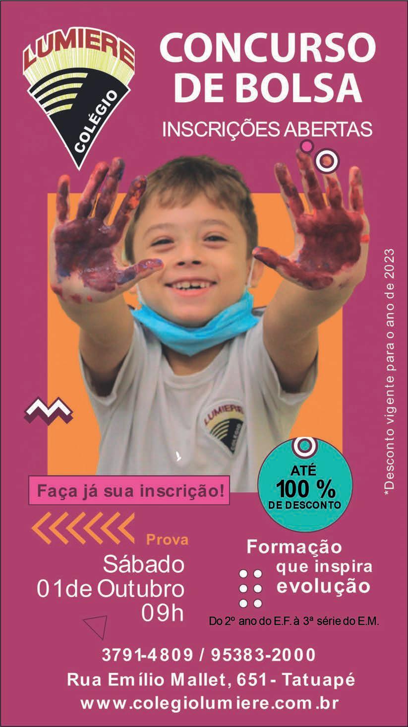 A seção recebe mensagens e sugestões pelo e-mail agenda@grupoleste.com.br ou pelo Whatsapp 11 98193-8399 www.gazetavirtual.com.br SÃO PAULO, 25 DE SETEMBRO DE 2022EDUCAÇÃO4