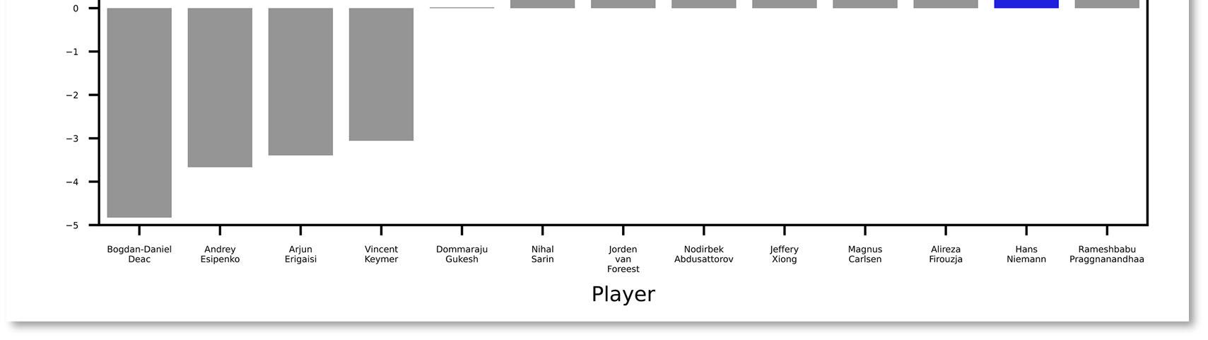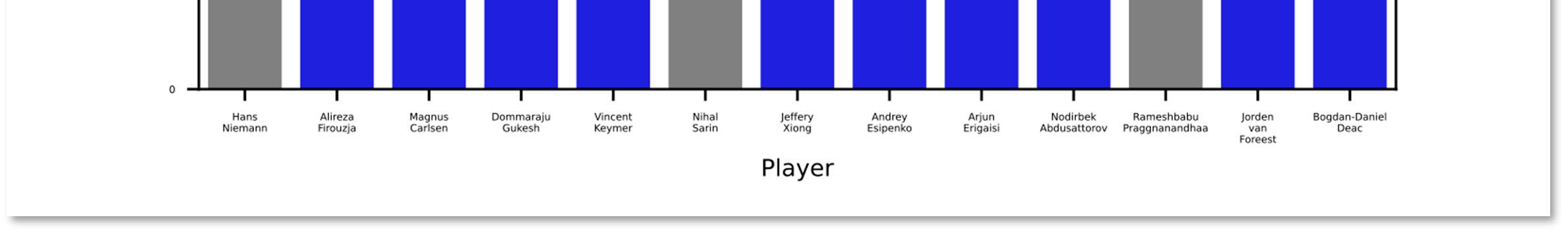 Despite these potential suspicions, as shown below in Section VIII, an in-depth review of Hans’ OTB games using Chess.com’s statistical methods revealed aggregate patterns of play that, while interesting, are possible for a rising player approaching 2700. In Section IX we present Hans’ top performing events based on his overperformance in strength and rating. We are prepared to cooperate with FIDE and respect their role in leading this, and any, future OTB investigations.
