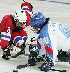 Lesfidedeltorneosidisputerannoa MilanoalSantagiuliaIceHockeyArena. LacompetizioneParalimpicaprevede squadremiste.Sigiocaintreperiodidi 15’ognuno.Oltreall’equipaggiamento protettivo(paraspalle,paragomiti, guanti,casco)gliatletisonosedutisu unaslitta(sledge)realizzateinalluminio rinforzatooacciaio,dilunghezzaminima di80centimetri.Perilgiocosiutilizzano duebastoni,dotatiadun’estremitàdi ramponidaghiaccio,cheaiutanonella spintaepermettonodicolpireildisco