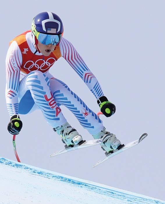 Hermissing righttrouser leghas become herdistinctive trait. Indeed,thatpurpleprosthesisthatshinesovera snowboard canonlybehers. It is away to distinguishherself,tosay that sheisnot afraid of hercondition.BrennaHuckaby’s legwas amputateddue to osteosarcoma at theage of 13.Withtwo Paralympic participations,three gold andone silver medal, thepurple-haired US athleteisseeking herthird consecutive wintomakehistory