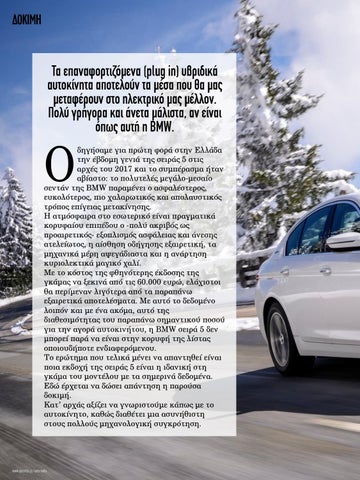 ΔΟΚΙΜΗ Τα επαναφορτιζόµενα (plug in) υβριδικά αυτοκίνητα αποτελούν τα µέσα που θα µας µεταφέρουν στο ηλεκτρικό µας µέλλον. Πολύ γρήγορα και άνετα µάλιστα, αν είναι όπως αυτή η BMW.