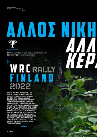 //// 45 G_MOTION_MAG//////// SPECIAL TRIBUTE //// POWERED BYWRC EKO RALLYACROPOLIS2022 RACING WRT Τ ο πλήρωμα από την Φινλανδία έχει φέτος συμπληρωματικό ρόλο στην Toyota Gazoo Racing, καθώς δεν συμμετέχει σε όλους τους αγώνες του πρωταθλήματος. Ο Λάπι έχει ανέβει το 2022 τρεις φορές στο βάθρο, τερματίζοντας στην 3η θέση στα Ράλλυ Σουηδίας, Φινλανδίας και Βελγίου. Ο 31 ετών οδηγός προσπάθησε αρχικά να κάνει καριέρα σε αγώνες πίστας, πριν μεταπηδήσει το 2010 στα ράλλυ. Μετά από επιτυχίες σε εθνικό επίπεδο, στέφθηκε πρωταθλητής Ευρώπης το 2014 και στο WRC2 το 2016, με τη Skoda. Από το 2017 λαμβάνει μέρος στην κορυφαία κατηγορία, στο τιμόνι αγωνιστικών των Toyota, Citroen και Ford. O Φερμ άρχισε την πορεία του ως συνοδηγός σε αγώνες ράλλυ το 2007, ενώ από το 2010 βρίσκεται στο πλευρό του Λάπι. Η Toyota αναζητούσε έναν Ιάπωνα οδηγό… πρώτης γραμμής για το WRC και τον βρήκε στο πρόσωπο του Κατσούτα. Η καριέρα άρχισε από τα καρτ στην ηλικία των 12 ετών και συνέχισε σε αγώνες Formula πριν δοκιμάσει στα ράλλυ το 2014. Η Toyota τον πρόσεξε και τον επέλεξε για το πρόγραμμά της για νέους οδηγούς. Υπό την καθοδήγηση του Τόμι Μάκινεν, συμμετείχε σε χαμηλότερες κατηγορίες με Fiesta R5. Κορυφαία στιγμή μέχρι τώρα η 2η θέση στο Σαφάρι το 2021, ενώ φέτος ανέβηκε ξανά στο βάθρο του ίδιου αγώνα (3ος). Φέτος αγωνίζεται με τη δεύτερη ομάδα της Toyota (Next Generation) και συνοδηγό τον Ιρλανδό Άαρον Τζόνστον, ο οποίος είχε συνεργαστεί νωρίτερα με τον Όλιβερ Σόλμπεργκ. • ΕΣΑΠΕΚΑ ΛΑΠΙ • ΓΙΑΝΕ ΦΕΡΜ • ΤΑΚΑΜΟΤΟ ΚΑΤΣΟΥΤΑ • ΑΑΡΟΝ ΤΖΟΝΣΤΟΝ