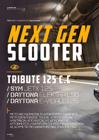//// 148 ////G_MOTION_MAG////PRESENTATION //// TOY ΝΙΚΟΥ ΓΙΑΝΝΟΥΛΑ / ΦΩΤΟΓΡΑΦΊΕΣ: SYM, DAYTONA ΜΕ ΤΟ ΝΕΟ ΝΟΜΟ ΓΙΑ ΤΗ ΔΥΝΑΤΟΤΗΤΑ ΟΔΗΓΗΣΗΣ ΜΟΤΟΣΙΚΛΕΤΩΝ ΕΩΣ 125 Κ.ΕΚ. -Η ΑΝΤΙΣΤΟΙΧΩΝ ΗΛΕΚΤΡΙΚΩΝ- ΑΠΟ ΚΑΤΟΧΟΥΣ ΔΙΠΛΩΜΑΤΟΣ ΑΥΤΟΚΙΝΗΤΟΥ, Η ΚΑΤΗΓΟΡΙΑ ΓΝΩΡΙΖΕΙ ΜΕΓΑΛΗ ΑΝΘΗΣΗ. ΑΣ ΔΟΥΜΕ ΤΙΣ ΠΙΟ ΧΑΡΑΚΤΗΡΙΣΤΙΚΕΣ ΕΠΙΛΟΓΕΣ ΜΑΣ. NEXT SCOOTERGEN  / SYM JETX 125 / DAYTONA ELEKTRA L50 / DAYTONA E-VIBALL125 TRIBUTE 125 C.C