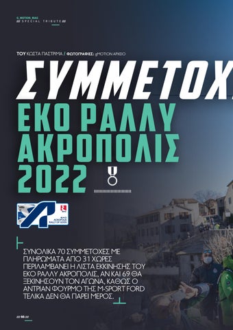 //// 97 //// Σ: ΕΔ8 05:30, ΕΔ11 11:30 / ΩΡΑΡΙΟ ΠΡΩΤΟΥ ΑΥΤΟΚΙΝΗΤΟΥ: ΕΔ8 08:33, ΕΔ11 14:33 σας μείνουν αξέχαστα, για τις μεγάλες ταχύτητες των αγωνιστικών. ΠΟΥ ΑΠΛΩΝΟΝΤΑΙ ΣΤΑ ΔΥΤΙΚΑ ΕΙΝΑΙ ΟΙ ΕΙΔΙΚΕΣ ΔΙΑΔΡΟΜΕΣ. ΣΕΠΤΕΜΒΡΙΟΥ 2022 G_MOTION_MAG //// SPECIAL TRIBUTE //// POWERED BYEKO RALLYACROPOLIS2022