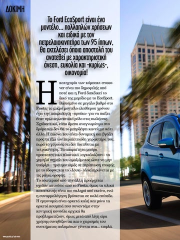 ΔΟΚΙΜΗ Το Ford EcoSport είναι ένα µοντέλο... πολλαπλών χρήσεων και ειδικά µε τον πετρελαιοκινητήρα των 95 ίππων, θα εκτελέσει όποια αποστολή του ανατεθεί µε χαρακτηριστική άνεση, ευκολία και -κυρίως-, οικονοµία!