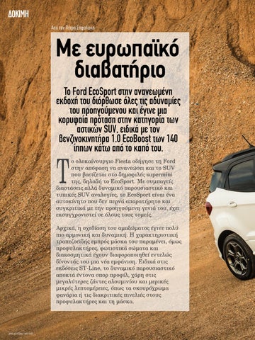 Με ευρωπαϊκό διαβατήριο Το Ford EcoSport στην ανανεωµένη εκδοχή του διόρθωσε όλες τις αδυναµίες του προηγούµενου και έγινε µια κορυφαία πρόταση στην κατηγορία των αστικών SUV, ειδικά µε τον βενζινοκινητήρα 1.0 EcoBoost των 140 ίππων κάτω από το καπό του.