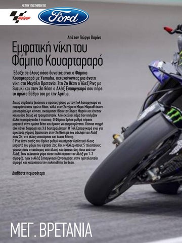 Εµφατική νίκη του Φάµπιο Κουαρταραρό Έδειξε σε όλους πόσο δυνατός είναι ο Φάµπιο Κουαρταραρό µε Yamaha, πετυχαίνοντας µια άνετη νίκη στη Μεγάλη Βρετανία. Στη 2η θέση ο Άλεξ Ρινς µε Suzuki και στην 3η θέση ο Αλέιξ Εσπαργκαρό που πήρε το πρώτο βάθρο του µε την Aprilia.