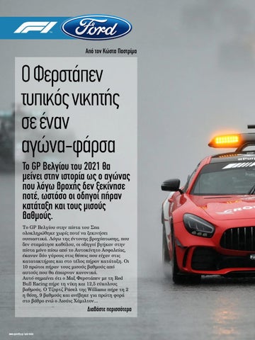 Ο Φερστάπεν τυπικός νικητής σε έναν αγώνα-φάρσα Το GP Βελγίου του 2021 θα µείνει στην ιστορία ως ο αγώνας που λόγω βροχής δεν ξεκίνησε ποτέ, ωστόσο οι οδηγοί πήραν κατάταξη και τους µισούς βαθµούς. Το GP Βελγίου στην πίστα του Σπα ολοκληρώθηκε χωρίς ποτέ να ξεκινήσει ουσιαστικά. Λόγω της έντονης βροχόπτωσης, που δεν σταµάτησε καθόλου, οι οδηγοί βγήκαν στην πίστα µόνο πίσω από το Αυτοκίνητο Ασφαλείας, έκαναν δύο γύρους στις θέσεις που είχαν στις κατατακτήριες και στο τέλος πήραν κατάταξη. Οι 10 πρώτοι πήραν τους µισούς βαθµούς από αυτούς που θα έπαιρναν κανονικά. Αυτό σηµαίνει ότι ο Μαξ Φερστάπεν µε τη Red Bull Racing πήρε τη νίκη και 12,5 εύκολους βαθµούς. Ο Τζορτζ Ράσελ της Williams πήρε τη 2 η θέση, 9 βαθµούς και ανέβηκε για πρώτη φορά στο βάθρο ενώ ο Λιούις Χάµιλτον...