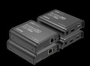 Kit KVM composto da trasmettitore e ricevitore progettati per estendere i segnali HDMI 1080p a 60Hz e due periferiche USB fino ad una distanza max di 60m su un singolo cavo di rete Cat.6 o superiore. Grazie al ripetitore di telecomando IR è possibile controllare la sorgente a distanza; la porta HDMI passante (Loop-Out) presente sul trasmettitore permette di collegare contemporaneamente un Monitor vicino ad esso. Funzione KVM: tramite le porte USB consentono di collegare ed estendere il controllo a distanza di tastiera e mouse. Supporta i segnali HD fino a 1080p, HDCP 1.3 e USB 1.1; compressione Audio LPCM/Dolby Digital/DTS HD. Questo Kit è facile da installare ed occupa poco spazio. Prodotto per uso semi - professionale adatto a negozi, uffici, entertainment, sale conferenze etc. Alimentazione 5V 1A (incluso).
