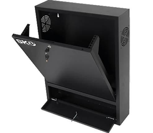 19” steel wall cabinet for DVR/NVR in security and video surveillance systems. Thanks to the robustness of the materials, the safety lock and the predisposition for the installation of a magnetic micro contact, and the special tilting drawer, it guarantees the maximum safety in a very compact size. Double housing for 120mm fans.