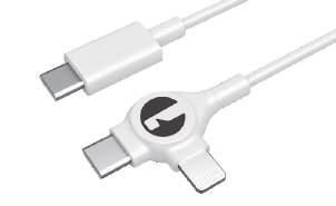 2in1 cable from “Type-C” connector to Type-C and Lightning allows charging of both Apple and Android devices