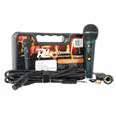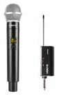 Sistema composto da microfono palmare wireless e ricevitore plug-in. Grazie al filtro anti-pop acustico integrato riduce/elimina la distorsione ed il rumore. Opera nella banda UHF, 10 canali (gestibili dal display). Può raggiungere una distanza di 50 metri. Il microfono portatile funziona con 2 batterie stilo da 1,5V (incluse), il ricevitore invece include una batteria ricaricabile 18650 Li-ion da 3.7V