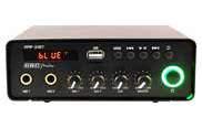 Amplificatore Pro integrato di potenza. BT & RADIO FM SCAN. Terminali a vite. Lettore USB / SD. 2 ingressi Mic. PHANTOM 48V. 2 ingressi AUX. Uscita AUX. Uscita PA a 70V/100V - 4-8 Ω per connessione a sistema di altoparlanti passivo. Funzione “ECHO”. Regolazione toni alti e bassi. Doppia alimentazione 230Vac / 24Vdc.