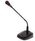 Microfono da tavolo con supporto a collo di cigno per impieghi con amplificatori PA. Funzione chiamata per generare il suono din-don (chime). Alimentabile tramite batteriea 9V o alimentatore esterno con uscita 12V-1A (entrambi non forniti). La confezione comprende microfono da tavolo, 5 mt di cavo microfonico (XLR 3P-M / Jack 6,3 mm Mono) e una spugna antivento.