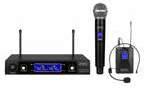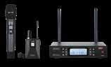 Sistema microfonico senza fili UHF con 1 microfono palmare ed 1 lavalier wireless. Opera nella banda 614MHz e 606MHz ed è consigliato per presentazioni e conferenze in pubblico.