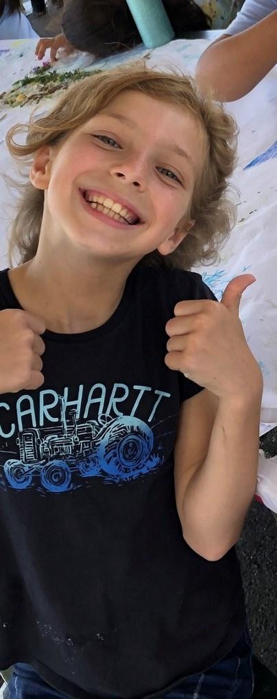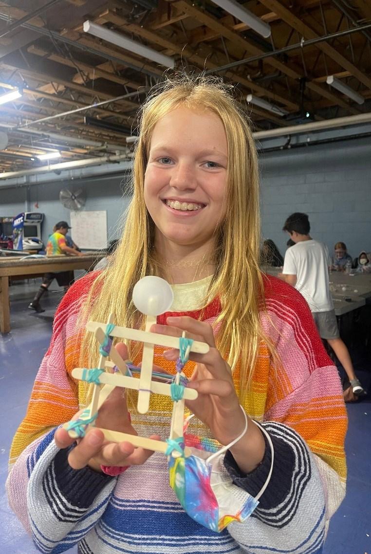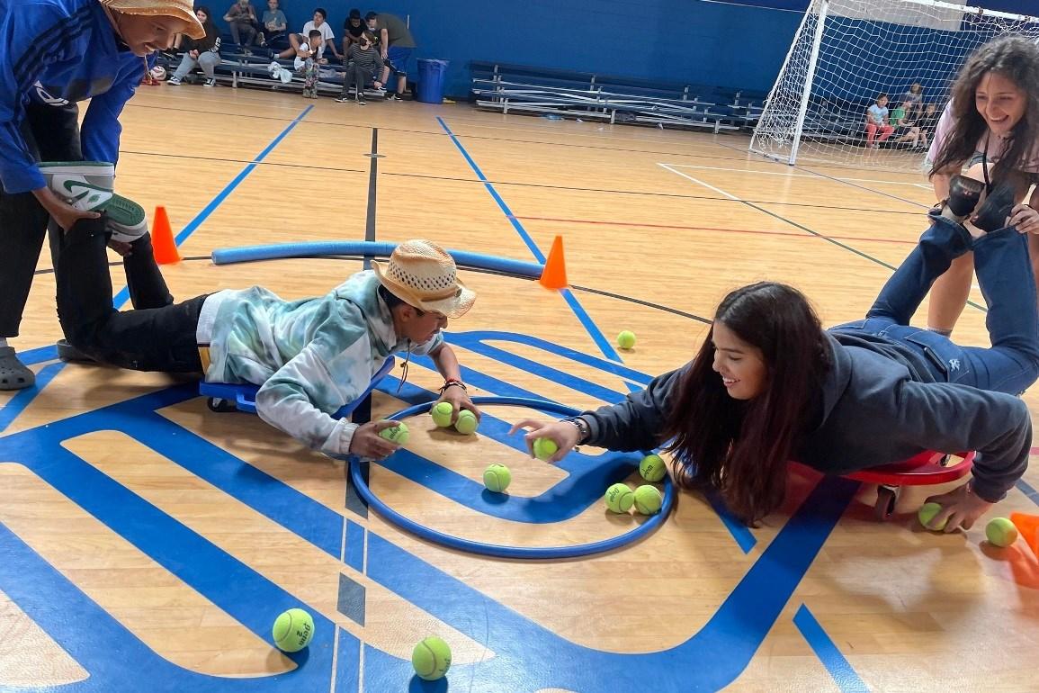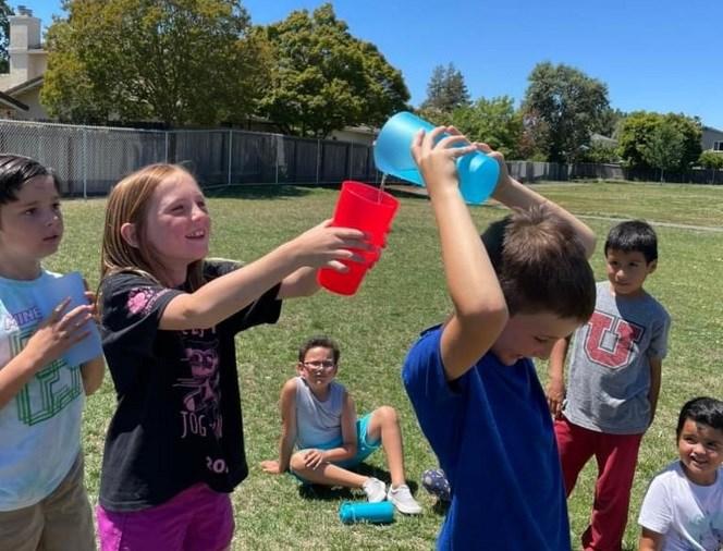 Michaela is communicating with Aiden on where she is placing her cup to not spill much water in the Water Cup Race. This 32oz cup started full but water spilled as they passed it through several members to fill the final bucket. This hot day consisted of all members rotating through various water game activities that emphasized communication, team building, awareness and more.