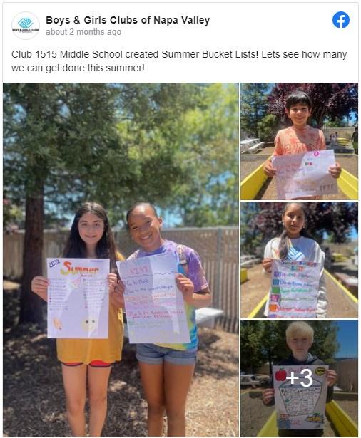 June 20th marked the first day of Summer Programs at the Napa Valley Boys & Girls Clubs. Because of an expanded partnership with Napa Valley Unified School District our doors opened to close to 2,000 members at locations throughout Napa and American Canyon. All summer long kids went home dirty, sweaty, and tired because of full days of art, skits, camp songs, sports, and gardening and even better the cost to attend these programs was ZERO! That’s right, no fee. Now that's how we Summer in Napa Valley!