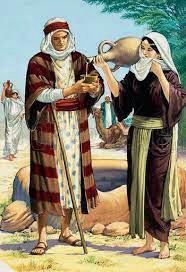 Nu Sarah te ruste is gelegd, richt Avraham zich op het veiligstellen van de toekomst van het verbond. Hij draagt zijn trouwe dienaar - door de Midrasj geïdentificeerd als Eliezer van Damascus - op om naar zijn thuisland te reizen en een vrouw voor Izaäk te zoeken onder zijn familieleden, waarbij hij de Kanaänieten, wiens waarden verschilden van de zijne, vermijdt. Als Eliezer in Aram-Naharaim aankomt, bidt hij om goddelijke leiding: de juiste jonge vrouw zal hem water geven en ook water halen voor zijn kamelen. Dit zal een teken zijn van haar vriendelijkheid en karakter.
