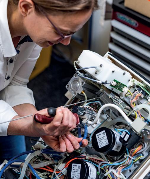 ‘Eigenlijk kan het bij iedereen passen. Je moet wel een beetje gevoel hebben voor techniek. Maar als je weet hoe je een schroevendraaier gebruikt, kun je het al leren. Je moet wel goed met anderen kunnen werken en een beetje out-ofthe-box kunnen denken, want soms moet je ter plekke creatieve oplossingen verzinnen. Het allerbelangrijkste is dat je het leuk vindt om met techniek bezig te zijn en dat je graag mensen wilt helpen.’