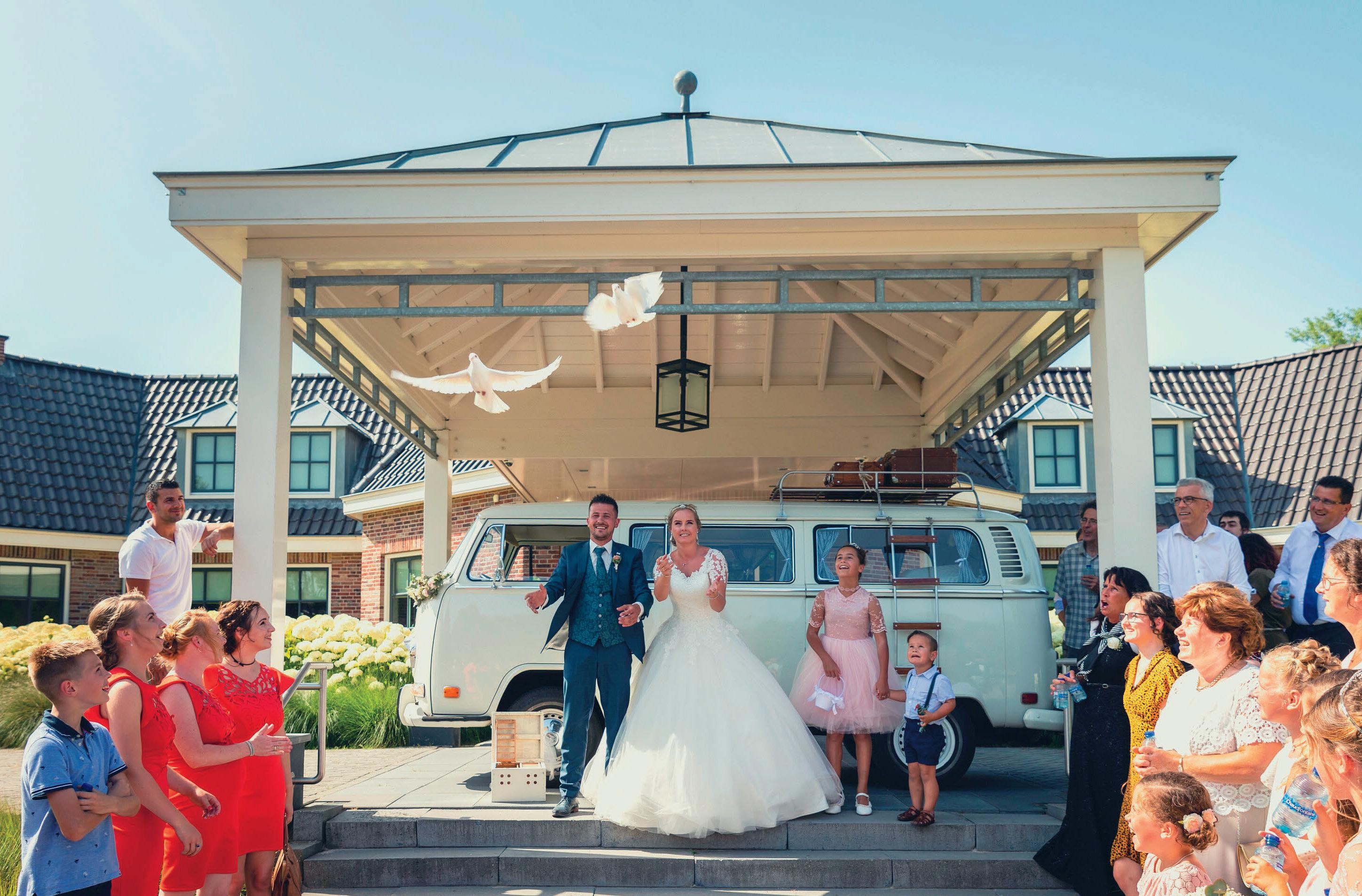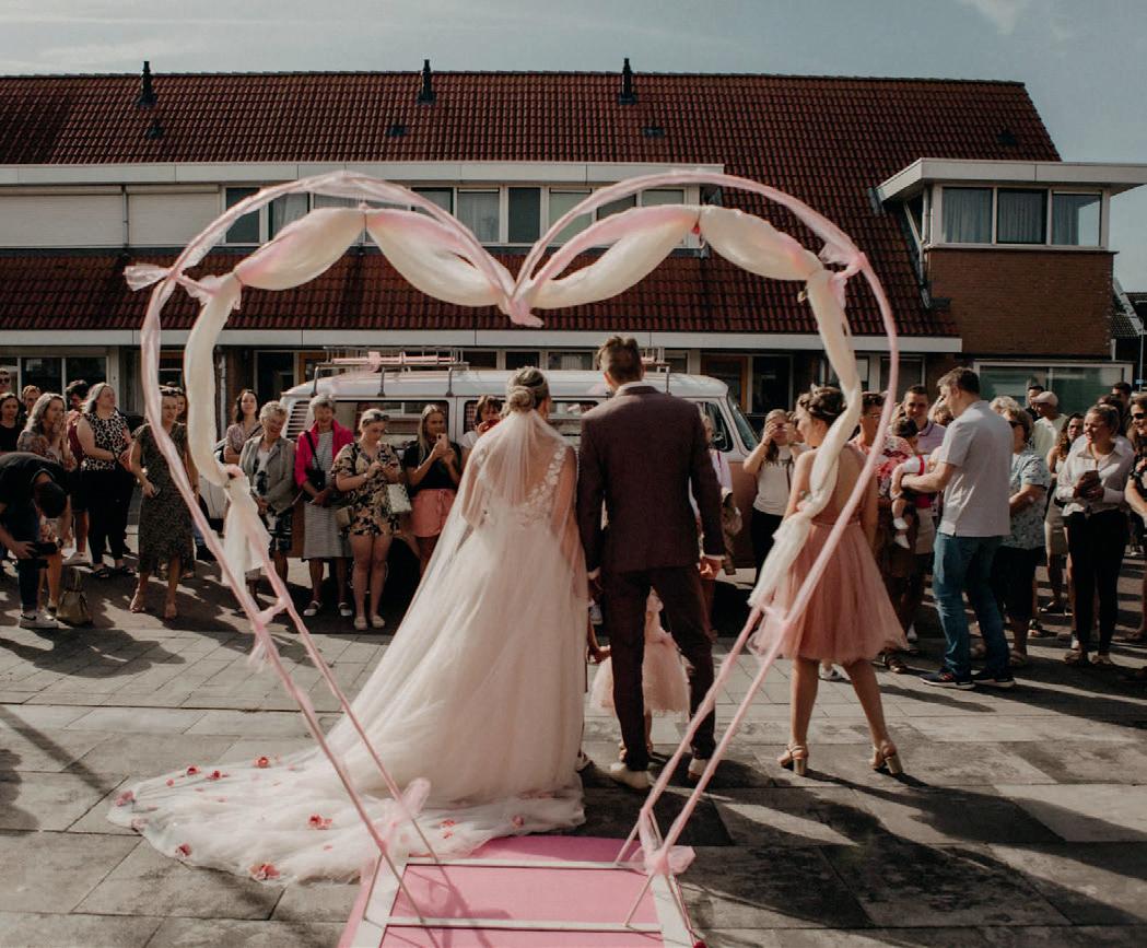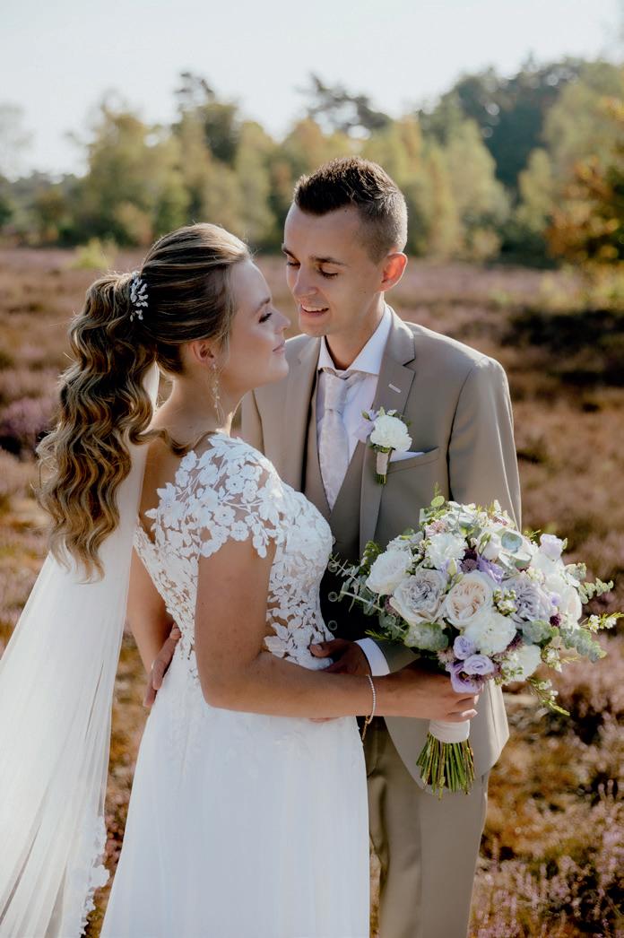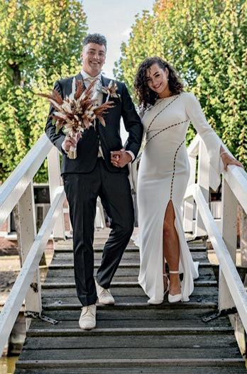 Over het stralende paar op de voorpagina Meinie Ras en Lydia Romkes zeiden ‘ja’ tegen elkaar op 28 mei 2022. Ze vierden feest bij de Koningshof. Hij kocht natuurlijk zijn pak bij Brouwers Mannenmode, zij slaagde bij Sorelle il Bianco. ,,Het was niet gelijk liefde op het eerste gezicht voor mij met de jurk. Het origineel had namelijk een lage rug, die zou dan vermaakt moeten worden. Mijn entourage zag gelijk dat dit dé jurk was. De coupeuse van Sorelle il Bianco heeft het vervolgens geweldig gedaan. En ja, het was ook echt dé jurk voor mij. We hebben echt een prachtige dag gehad,” vertelt Lydia met een stralende lach. De foto is van de hand van Annelene Bloed.