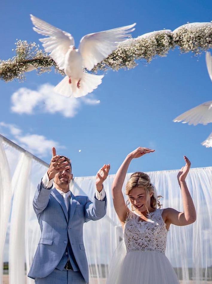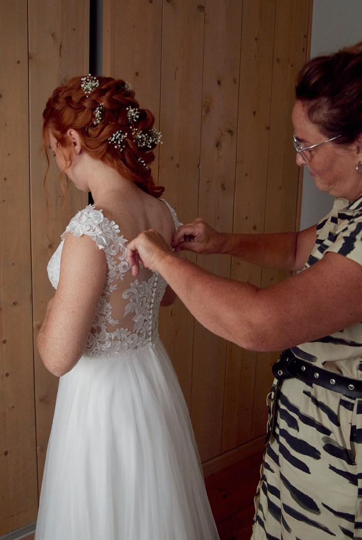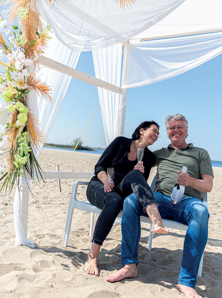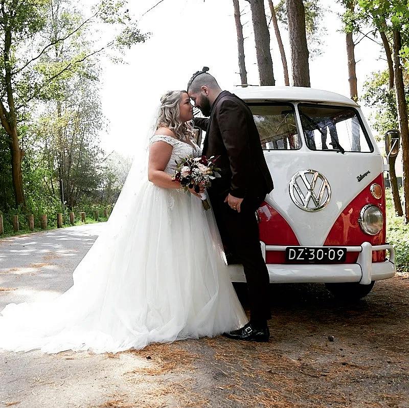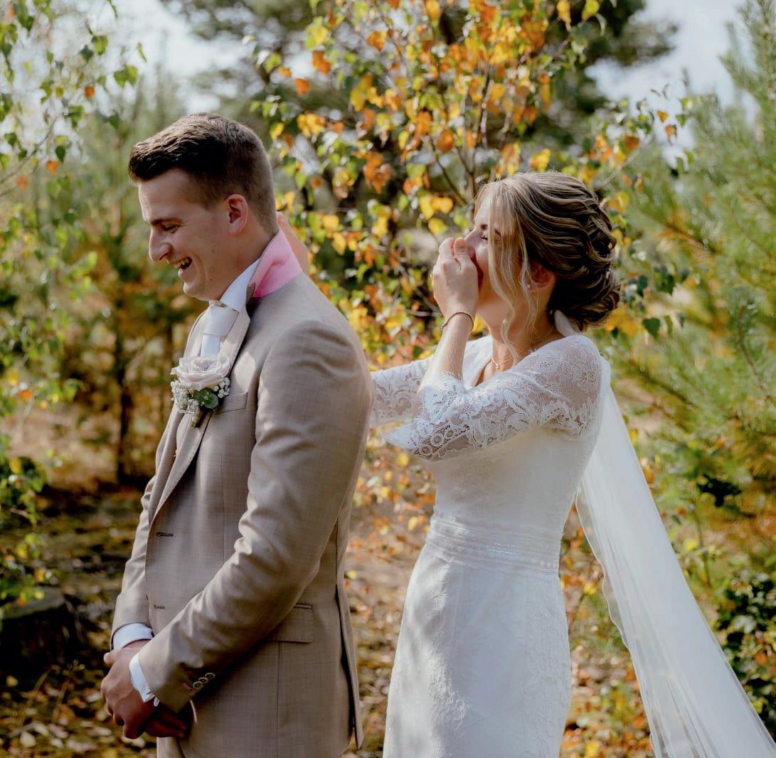 Over het stralende paar op de voorpagina Meinie Ras en Lydia Romkes zeiden ‘ja’ tegen elkaar op 28 mei 2022. Ze vierden feest bij de Koningshof. Hij kocht natuurlijk zijn pak bij Brouwers Mannenmode, zij slaagde bij Sorelle il Bianco. ,,Het was niet gelijk liefde op het eerste gezicht voor mij met de jurk. Het origineel had namelijk een lage rug, die zou dan vermaakt moeten worden. Mijn entourage zag gelijk dat dit dé jurk was. De coupeuse van Sorelle il Bianco heeft het vervolgens geweldig gedaan. En ja, het was ook echt dé jurk voor mij. We hebben echt een prachtige dag gehad,” vertelt Lydia met een stralende lach. De foto is van de hand van Annelene Bloed.