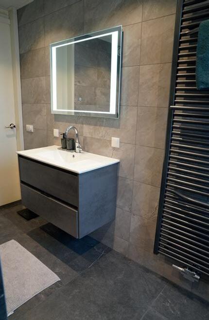 Geheel verzorgd inclusief: leidingwerk, betegelen (Villeroy en Boch), hangend toilet (Sphinx) incl. reservoir. Mooi badkamer meubel. Thermostaat douche mengkraan met regendouche en een inloopdouche met scherm. Ruime keuze in tegels met mooie kleuren.