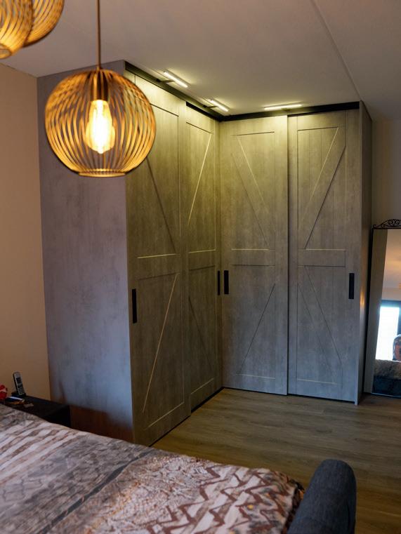 Van een inloopkast met dubbele functie, tot zelfs een aanbouwwoning met extra slaapkamer en badkamer; geen uitdaging was te groot. ,,We wilden de ruimte zo praktisch en ruimtelijk mogelijk inrichten. Als ik ’s avonds thuiskom van een drukke dag op mijn werk, wil ik echt tot rust komen. Zo hebben we Jan’s Design ingehuurd om alle muren mooi egaal te stuken. En dat was nogal een werk,’’ zegt Meta lachend, ,,van alle ruimtes beneden, tot de zolder en de volledige aanbouwwoning. Met een team van vier man hebben ze alles in een oogwenk geregeld. Jan luistert goed naar zijn klanten en gaat professioneel te werk. Het is zo mooi strak geworden! Ik was wel van plan om de muren nog te verven of behangen, maar achteraf vind ik dat gewoon zonde. Laatst had ik twee mooie schilderijen in mijn hand om aan de muur te hangen, maar bedacht ik me toch