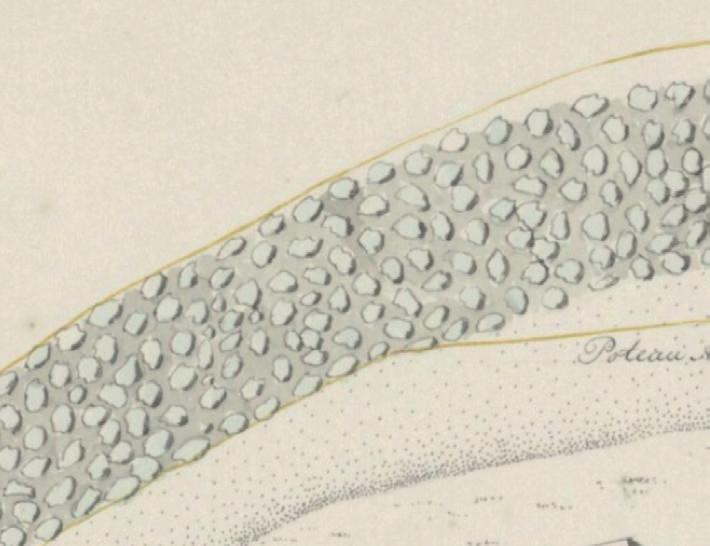 In de Franse periode werden vooral de stenen glooiingen verbeterd (op het onderste plaatje de oude situatie boven en de nieuwe situatie beneden). Ook werd de dijkglooiing minder steil gemaakt.