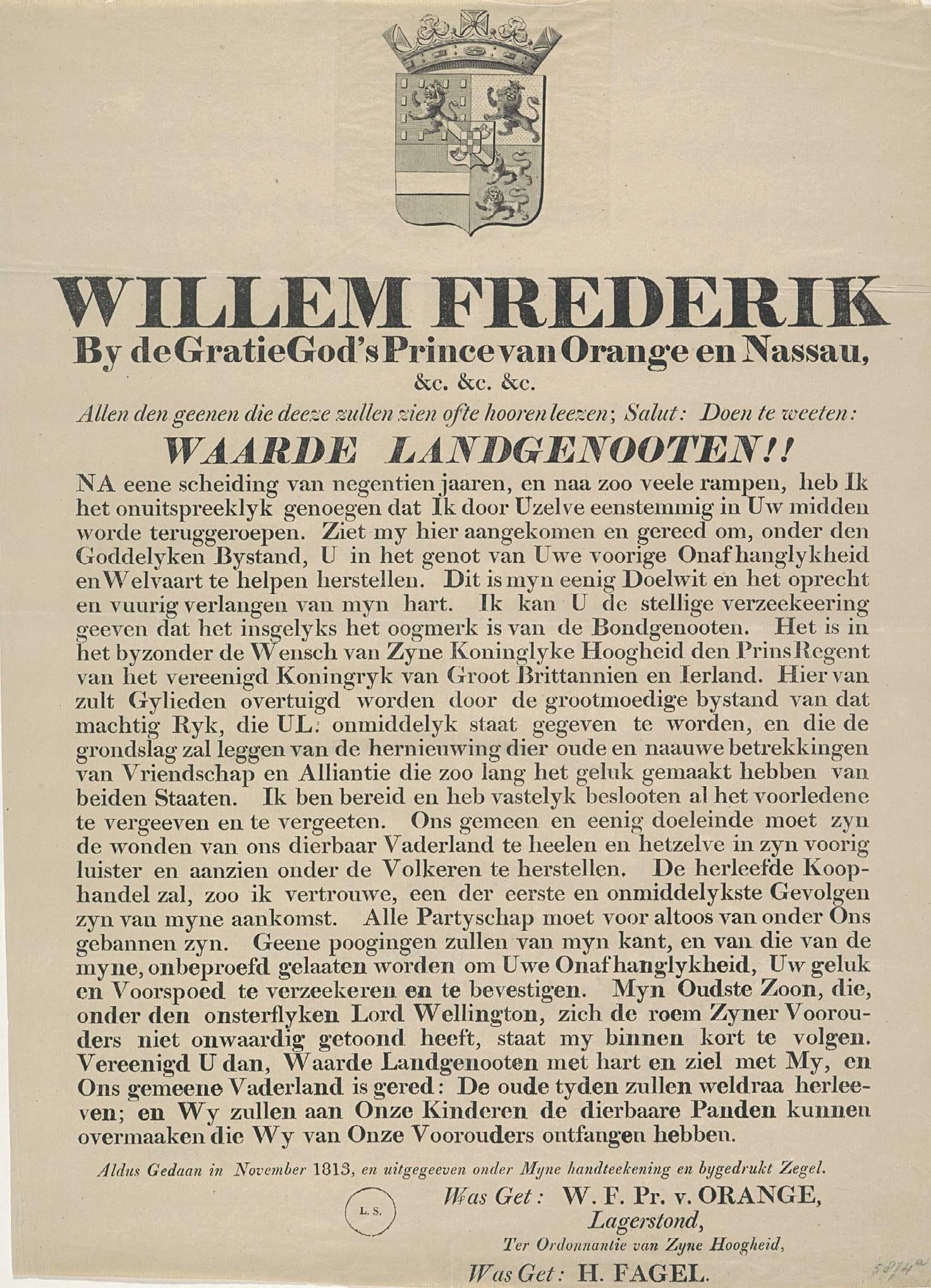 Een dag later riepen de Fransen en patriotten in het stadhuis van Amsterdam de Bataafse Republiek uit. Hervormingsgezinde patriotten – die zichzelf Bataven gingen noemen naar de Bataafse Opstand (70 na Chr.) ten tijde van Julius Civilis – roken hun kans en namen in de Republiek de macht over. Het was een fluwelen revolutie met nauwelijks geweld: de orangisten bewaarden de rust en droegen de machtsfuncties over aan de patriotten. De Bataafse Republiek was geboren.