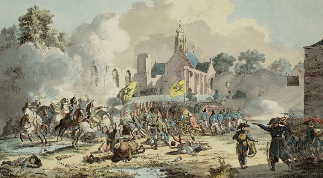 De Franse revolutie veranderde het beeld in Europa radicaal. In april 1792 verklaarde Frankrijk de oorlog aan de Republiek der Verenigde Nederlanden, Pruisen en Oostenrijk. De eerste aanval op Nederland liep dood op een goede defensie. In de zomer van 1794 kwamen de Fransen tot in Brabant en werden gestuit door de grote rivieren. Aan de zijde van de Fransen streed een Hollands Bataafs legioen mee. De natuur kwam de Fransen en de patriotten te hulp met strenge vorst. In december 1794 trokken de Fransen over de bevroren rivieren en op 16 januari werd Utrecht al bezet. Op 18 januari week prins Willem V met zijn gezin en klein gevolg met gehuurde visserspinken uit naar Engeland.