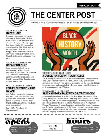 If you need special accommodations please call 301-258-6380, or e-mail BenjaminGaitherCenter@gaithersburgMD.gov