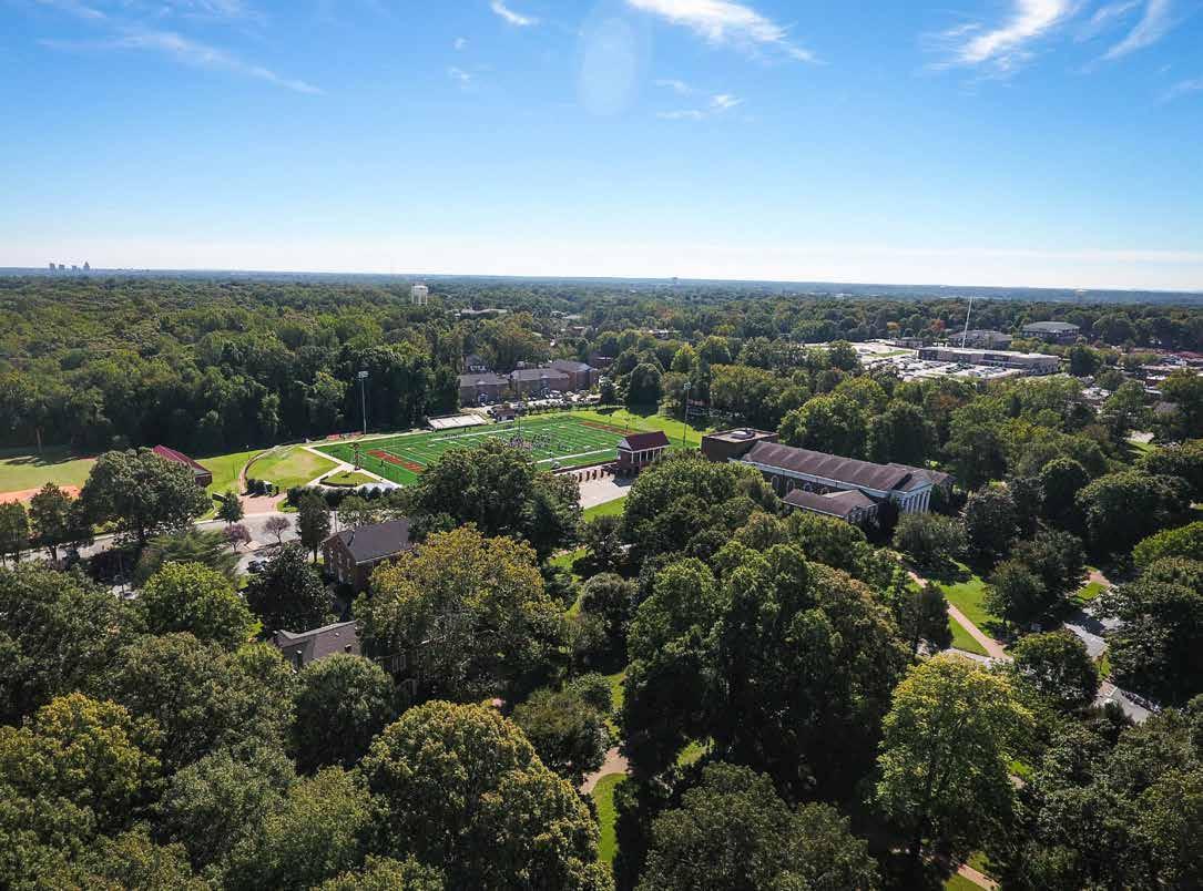Founders Hall, like Guilford itself, is no ivory edifice. It looks out over our postcard-worthy quad and Greensboro, the thirdlargest city in North Carolina. On campus and nearby, Guilford students have all they need for a rich intellectual and social experience — one that empowers them to make a difference on campus and in the world.