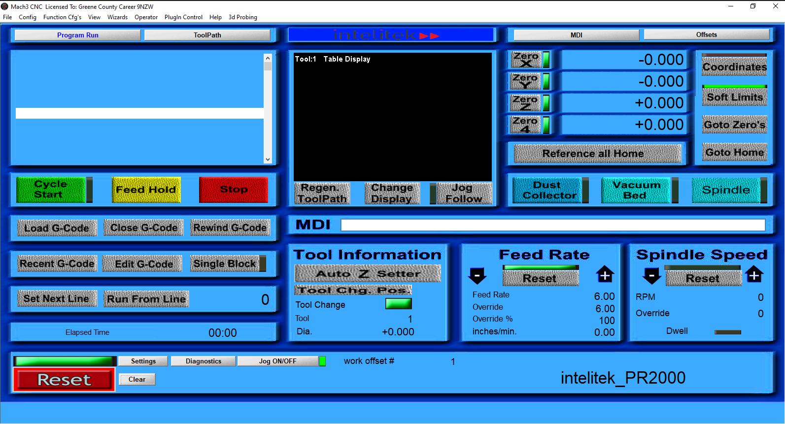 a. If you get a “soft limit” warning, this means the toolpath exceeds the dimensions of the router and must be reconfigured Check your X0Y0 (home) to ensure it’s at the MRZ corner If it is, check your toolpaths in VCarve as they may be too close