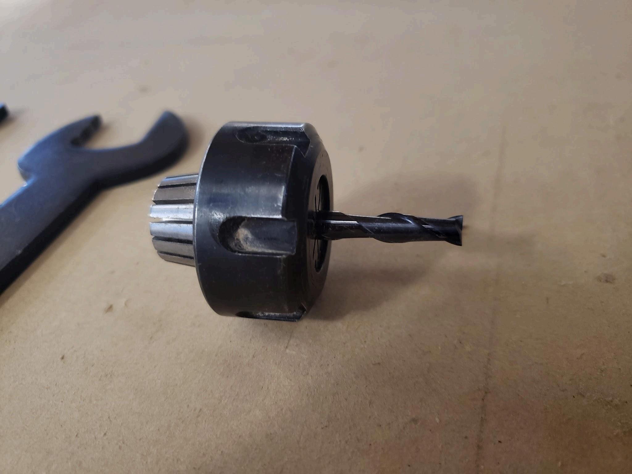Ensure the cutting surface (flutes and channels) are not inside the collet See picture below for reference The tool should fit snug into the collet and not wiggle around If it wiggles around, you will need a smaller diameter collet