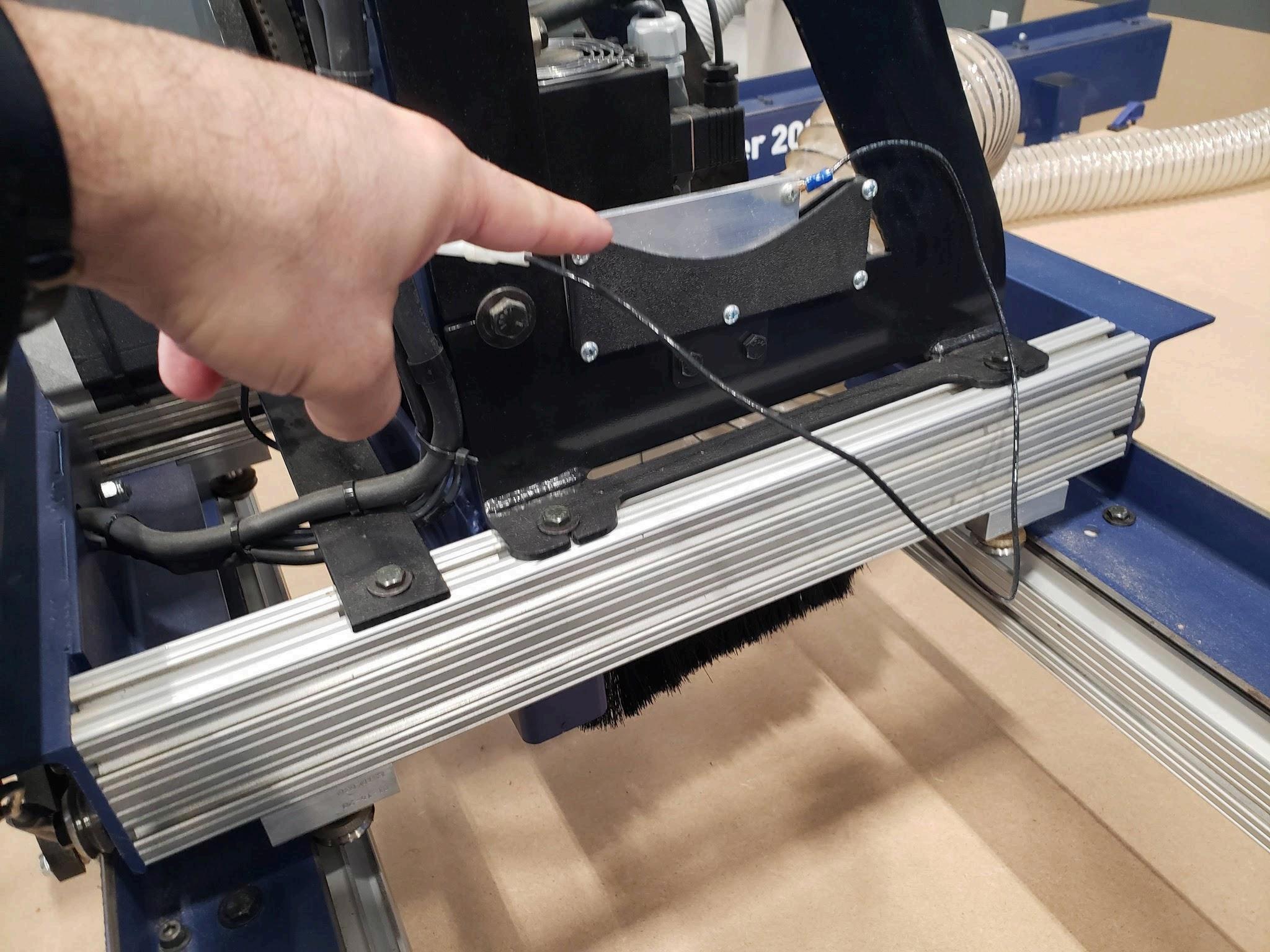 d. Place the wired metal plate under the spindle/tool